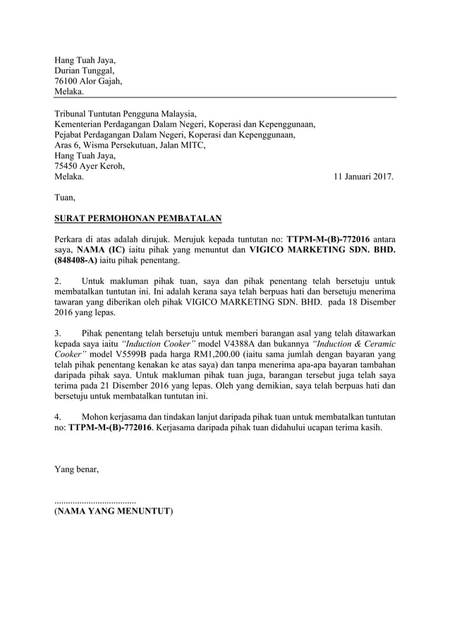 Contoh Surat Batal Tuntutan Tribunal