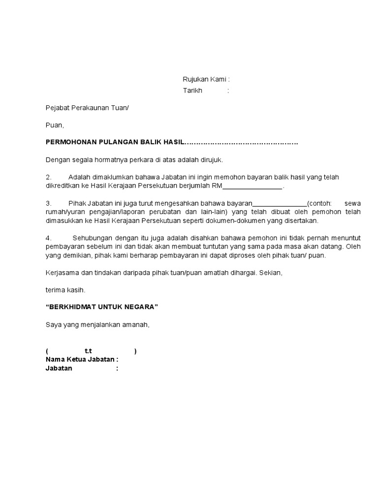 Web Contoh surat tuntutan bayaran balik. Web Uncategorized Standard. 1 surat permohonan bayaran balik oleh pemohon.